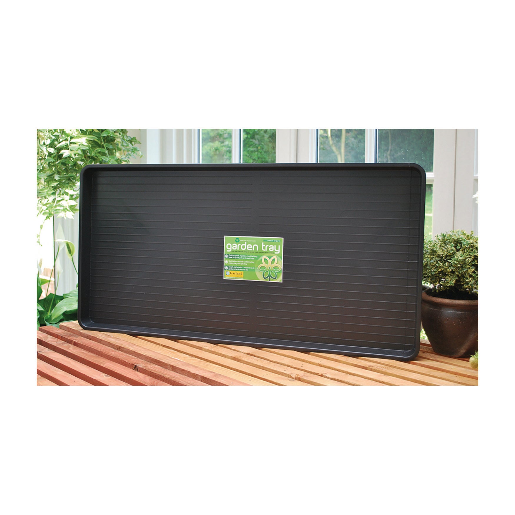 This injection molded Giant Garden Tray Tray is made of 100% reycled polypropylene. Ideally sized for standard greenhouse staging. It can be used by private and commercial gardeners alike as a large irrigation table. The tray can be filled with grit or capillary matting if preferred. Shallow horizontal ridges on the base of they tray aid drainage. Its sheer size means that by simply filling the tray with water a large number of plants can be watered in minimal time. Internal capacity of over 6 gallons. Sturdy and built to last! 43"L x 21.5"W x 1.5"H 5lbs