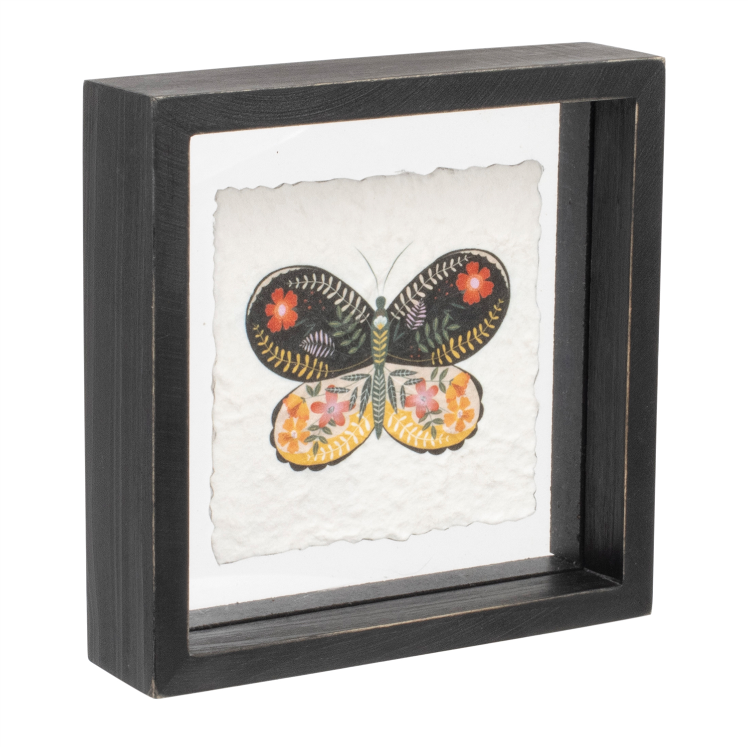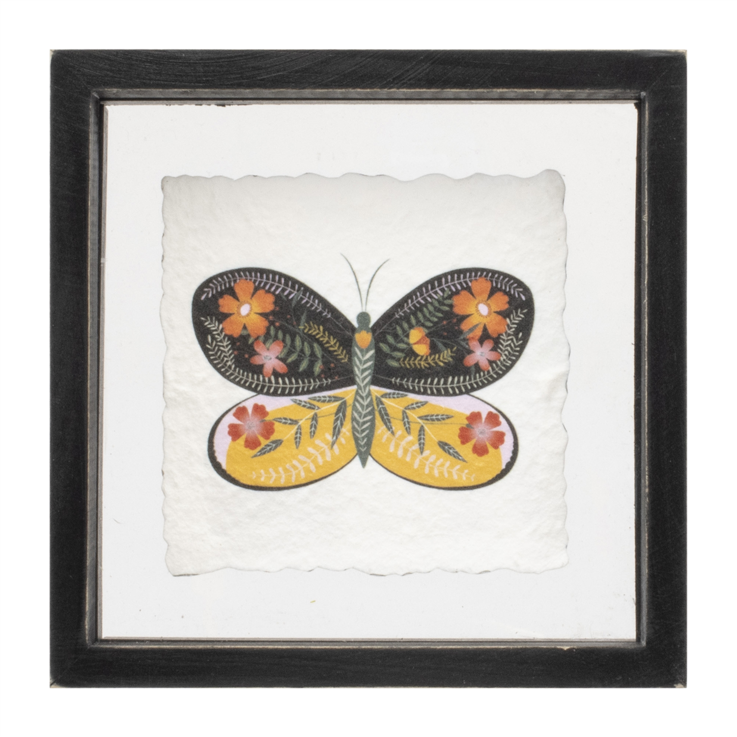 Bring nature-inspired elegance to your walls with this Set of Framed Butterfly Blocks. Each 6" square piece features striking butterfly illustrations in warm yellow, black, and white tones, beautifully framed in wood and protected with acrylic for a modern yet timeless look. Whether styled together or placed separately, these versatile wall accents enhance any space with charm and sophistication—perfect for garden-chic, contemporary, or minimalist decor. Designed for indoor use, these plaques are a lasting way to add graceful detail to your home. Sold in a set of two assorted designs to create a balanced and memorable display in your home.