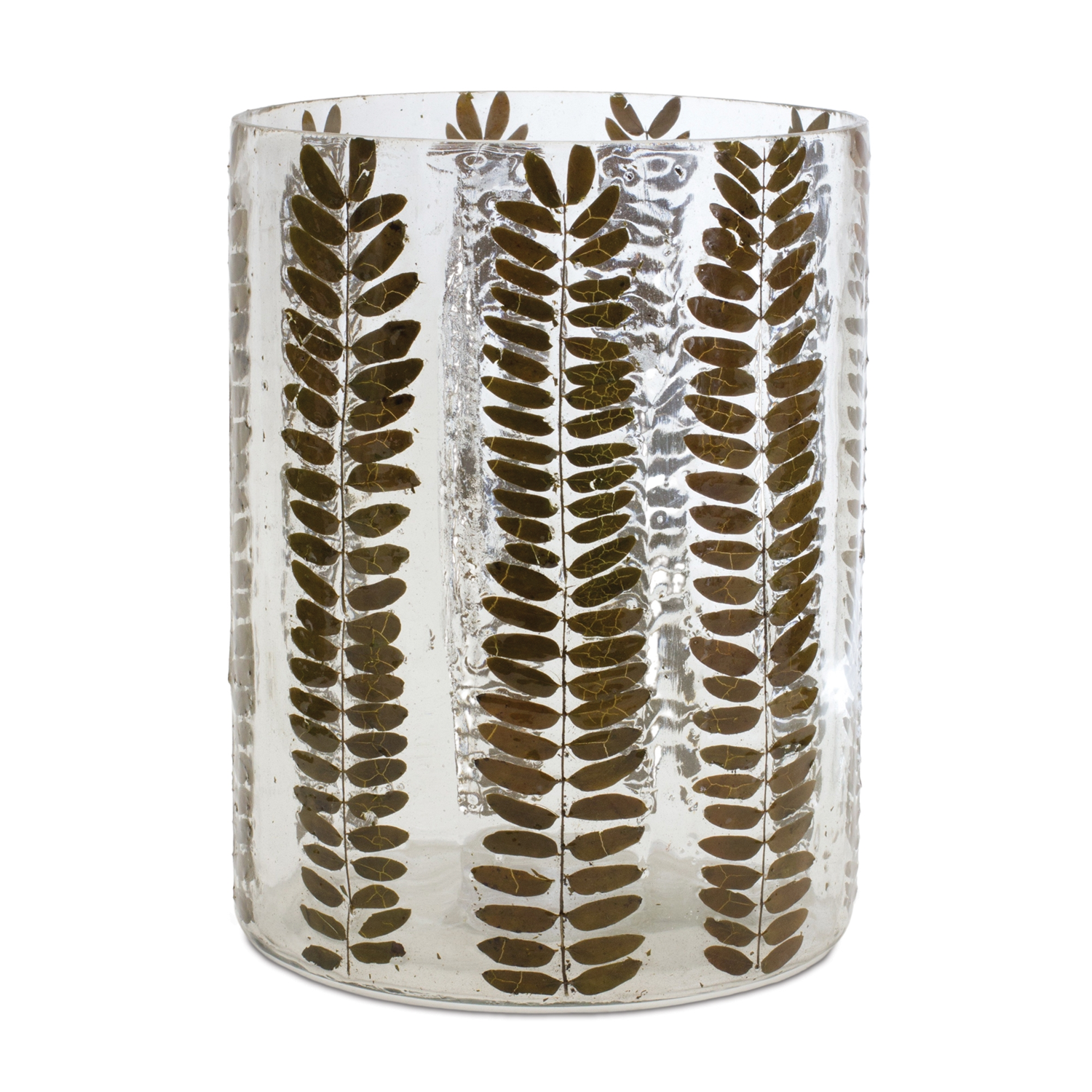 Bring the outdoors in with the Dried Leaf Glass Candle Holder. This glass vase features a beautiful dried rowan leaf design, perfectly embedded within its wavy glass structure. Ideal for mid-century modern and farmhouse styles, it adds a touch of natural elegance to any space. Perfect for use with 4-5" pillar candles (sold separately), this stunning piece creates a warm, inviting ambiance. Durable and stylish, it's sure to be a centerpiece for seasons to come.