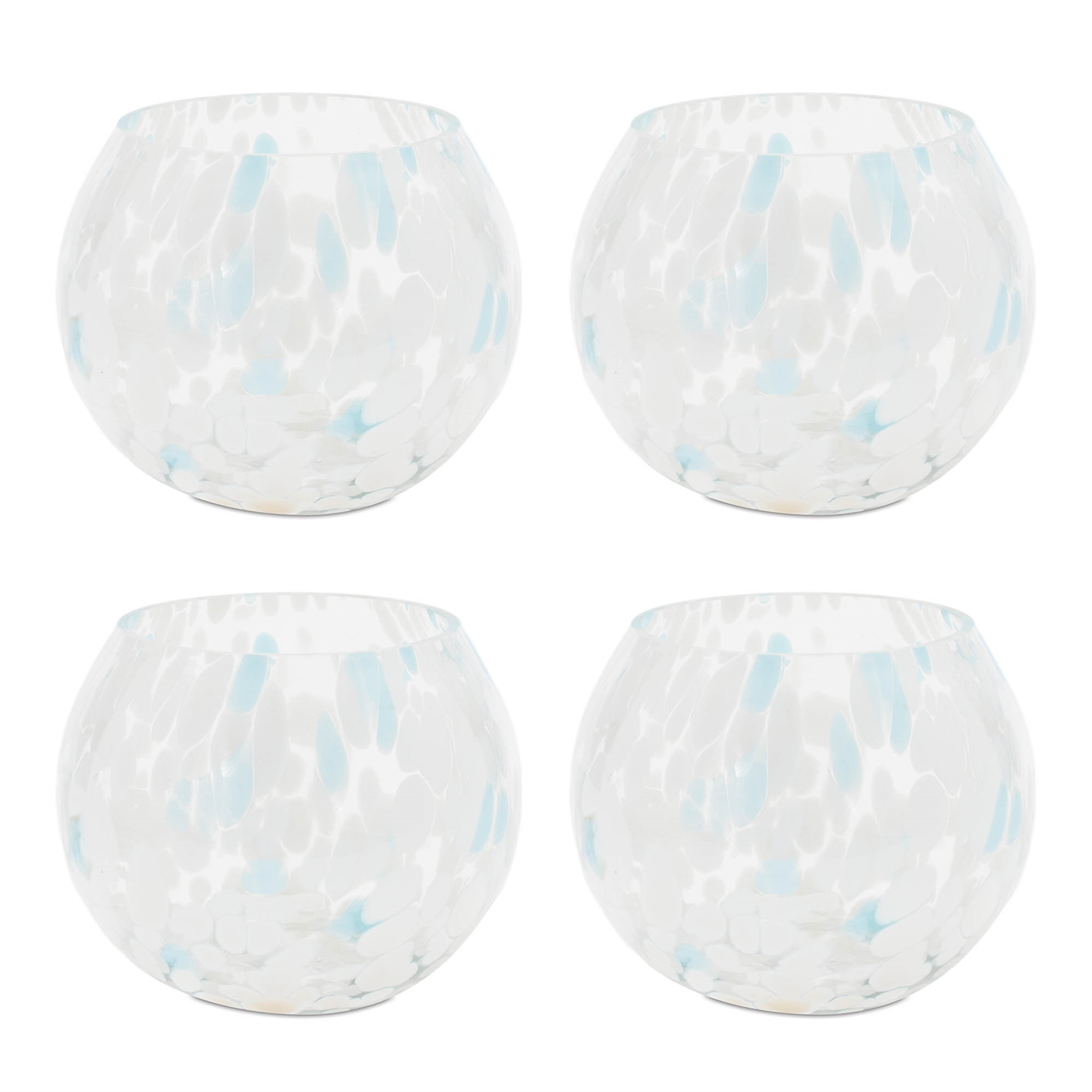 Add a fresh, coastal touch to your decor with the Painted Glass Candle Holder Vase Set. Featuring cool blue and white tones with an abstract painted design, these chic holders enhance your home with a modern feel. The clear finish offers a clean, elegant look, making them perfect for small votives or tealight candles, or even as vases to display a small bunch of fresh flower stems. Sold in a set of four, these versatile holders are a stylish addition to any space.