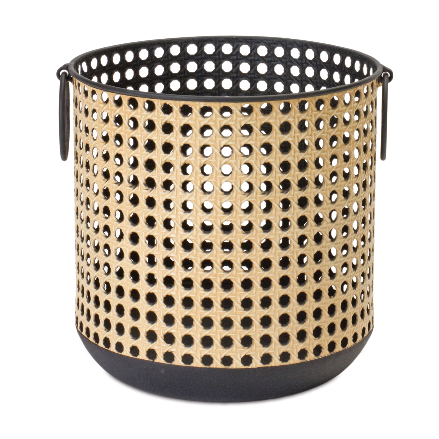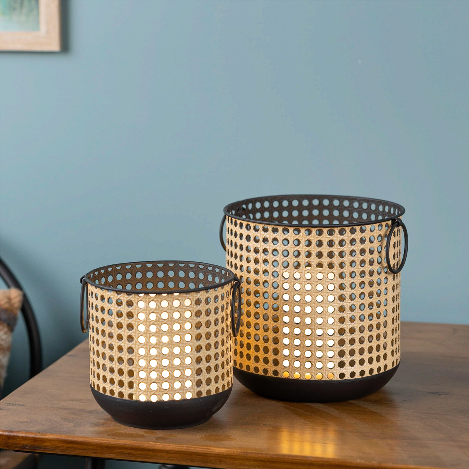 Add a touch of elegance to any room with this stunning set of two Punched Metal Candle Holders. Featuring a blend of modern and vintage styles, these holders boast a unique rattan design that complements both mid-century and coastal decor. Crafted from durable iron, they promise lasting beauty, while their intricate punch detailing creates a warm, ambient glow when paired with real wax or LED candles (sold separately). Whether for everyday use or special occasions, these versatile candle holders are perfect for adding charm and light to your home. Sold in a set of two assorted sizes to create a balanced display in your home.