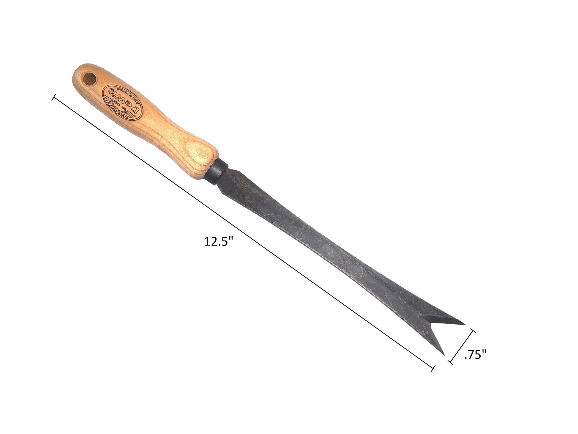 More than a tool it's an heirloom! Contemporary design this Bio Daisy Grubber is great for popping up weeds especially dandelions. Made from one piece of hardened boron stamped steel with an ash hardwood handle. Great for getting into small hard-to-reach places. This tool is guaranteed a lifetime! Head: 0.75"W Total: 12.5"L 0.5lbs