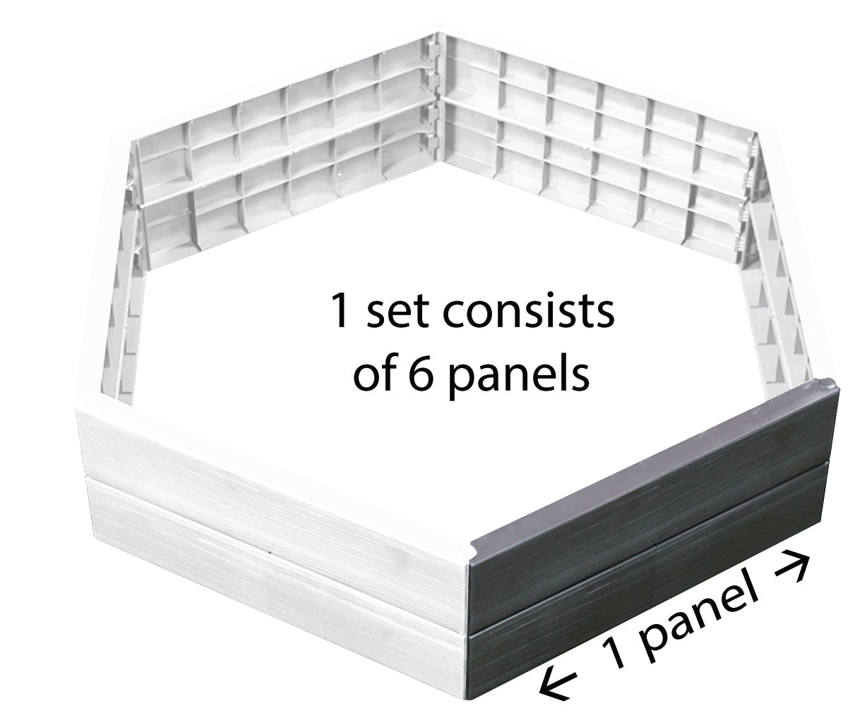 Graf Ergo Raised Bed garden bed system is ideal for those with limited space to easily plant their own herbs veggies and flowers. Raised garden beds have many advantages over conventional growing: early harvesting higher yields and more efficient ergonomic gardening to alleviate back strain. Made from UV-protected recycled polypropylene with decorative wood texture on surface it is more attractive than the plastic versions previously available and more practical than those made of wood. Moisture-resistant and maintenance free! The basic set is 6 panels each 22 inches long assembled into a hexagon-shape. Height can be increased by stacking additional sets to reach desired height increments of 10 inches added to height with each set. One set holds 52 gallons of soil. Easy to assemble no tools required. Made in Germany 5 year warranty. Additional panels can be added to extend length of bed sold separately Item #645101. 37.5"W x 10 " H 9lbs 52 Gal