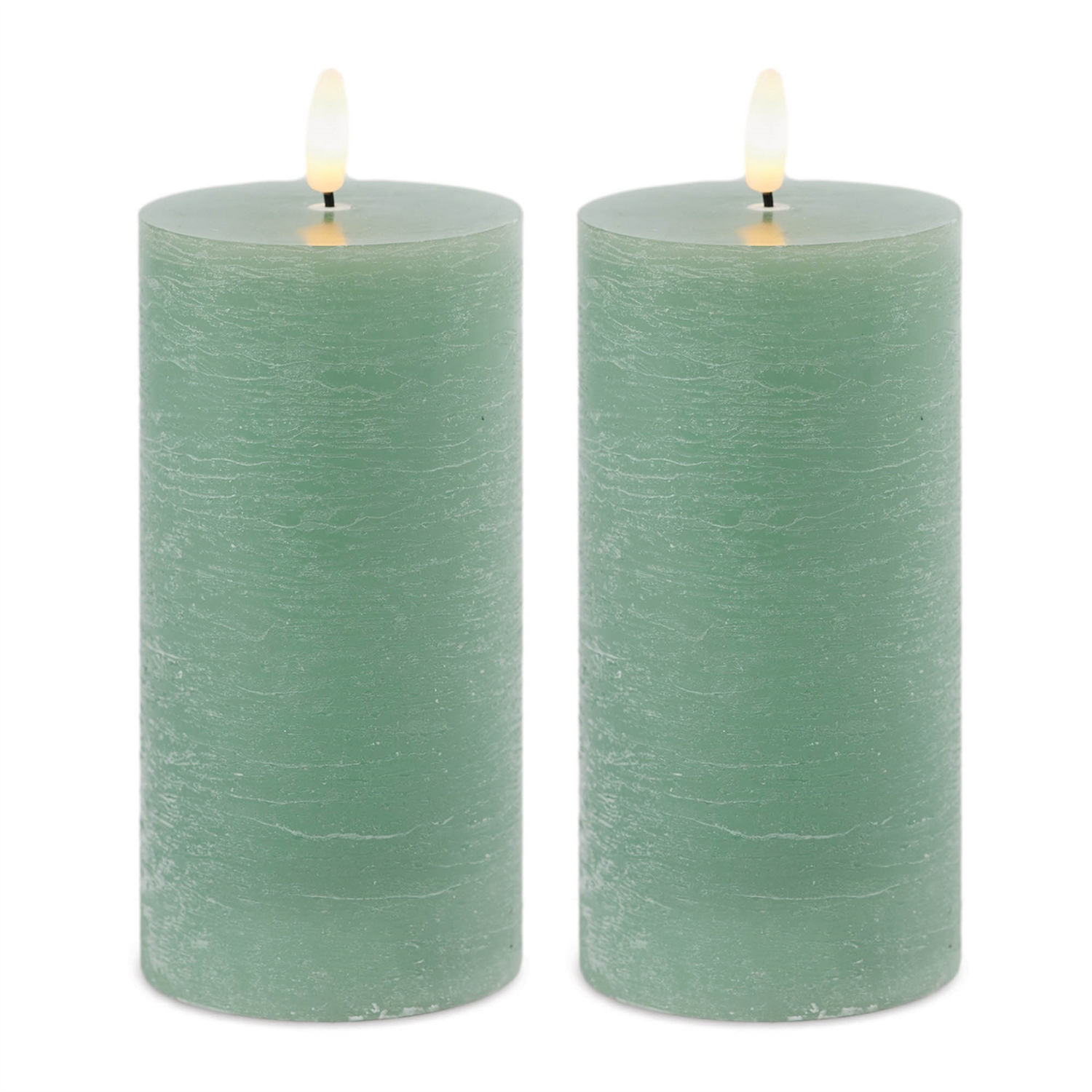 Bring the tranquil beauty of nature indoors with the FIA Wick Green Pillar Candle Set. Featuring a serene green tone and smooth finish, this set adds a pop of color while creating a calming ambiance. Thanks to FIA Wick technology, this set of two candles flicker just like real flames but are safe to use indoors, with no fire hazard. Crafted from natural soy wax and plastic, each candle requires 2 C batteries (not included). With the included universal remote, you can control all your FIA Wick designer candles effortlessly.