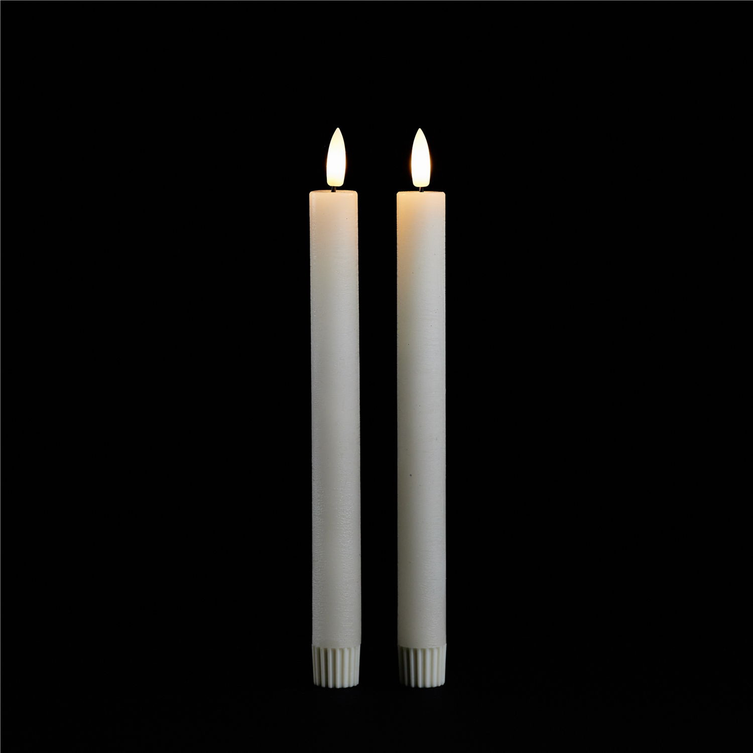 Add a warm, elegant touch to any room with the FIA Wick Ivory Taper Candles. Featuring FIA Wick technology, these candles create the illusion of a real flame, without the risks associated with traditional burning candles. The cool ivory tone and smooth finish give them a sophisticated look that complements a variety of decor styles. Sold in a set of two pieces, each candle requires 1 AAA battery (not included). A universal remote is included, allowing easy control of all FIA Wick candles.