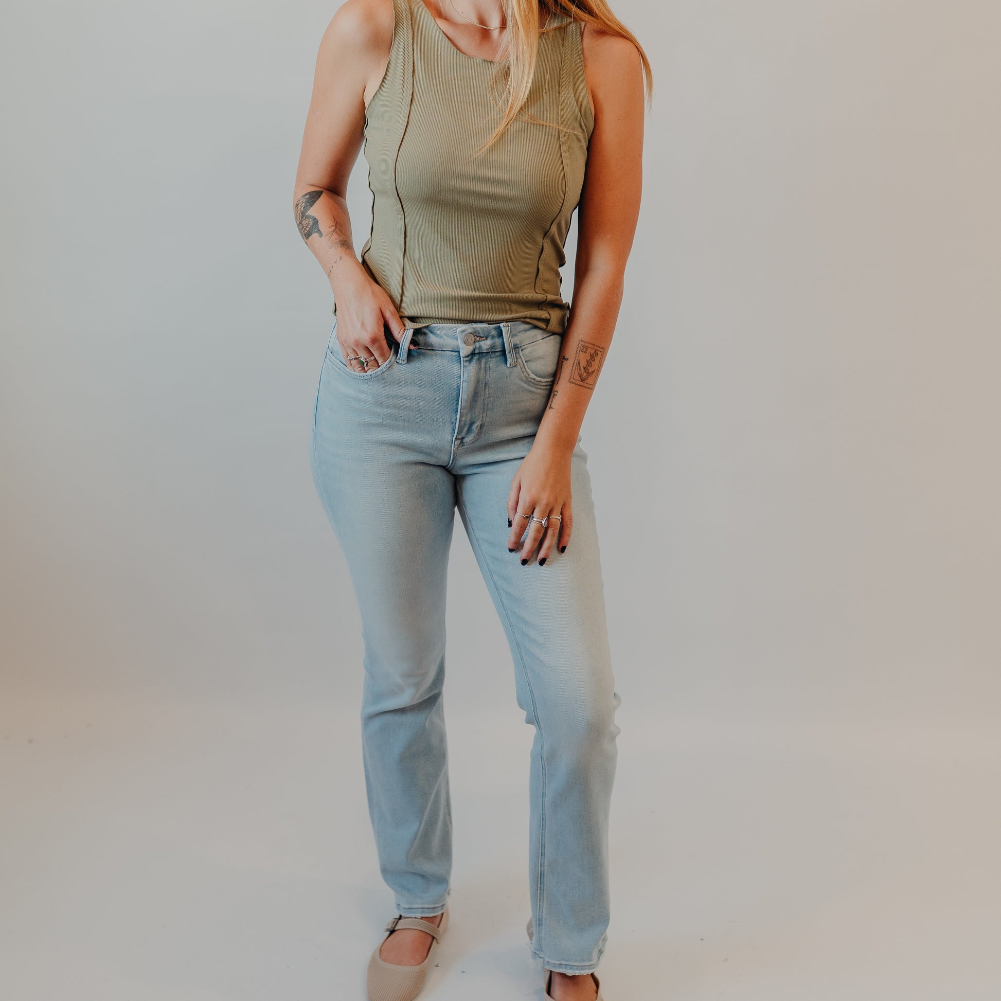 Meet your new go-to denim for every day. These light wash jeans feature a flattering high-rise fit and straight leg silhouette that’s both classic and modern. Finished with subtle fading and a raw hem, they’re the perfect mix of laid-back and polished. Pair them with a fitted top and boots for a casual look or dress them up with a blouse and blazer for a night out.