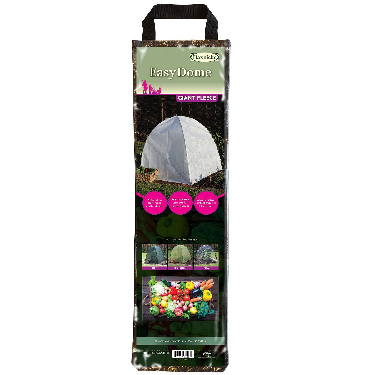 Provides warmth and insulation permitting air moisture and sunlight to permeate. It establishes a complete barrier against frost severe weather animals and pests. Constructed from UV-stabilized 45gsm heavyweight polypropylene fleece and rust-resistant galvanized steel hoops. Includes ground pegs for installation. Dimensions 36'L x 36"W x 37"H 2.5lbs