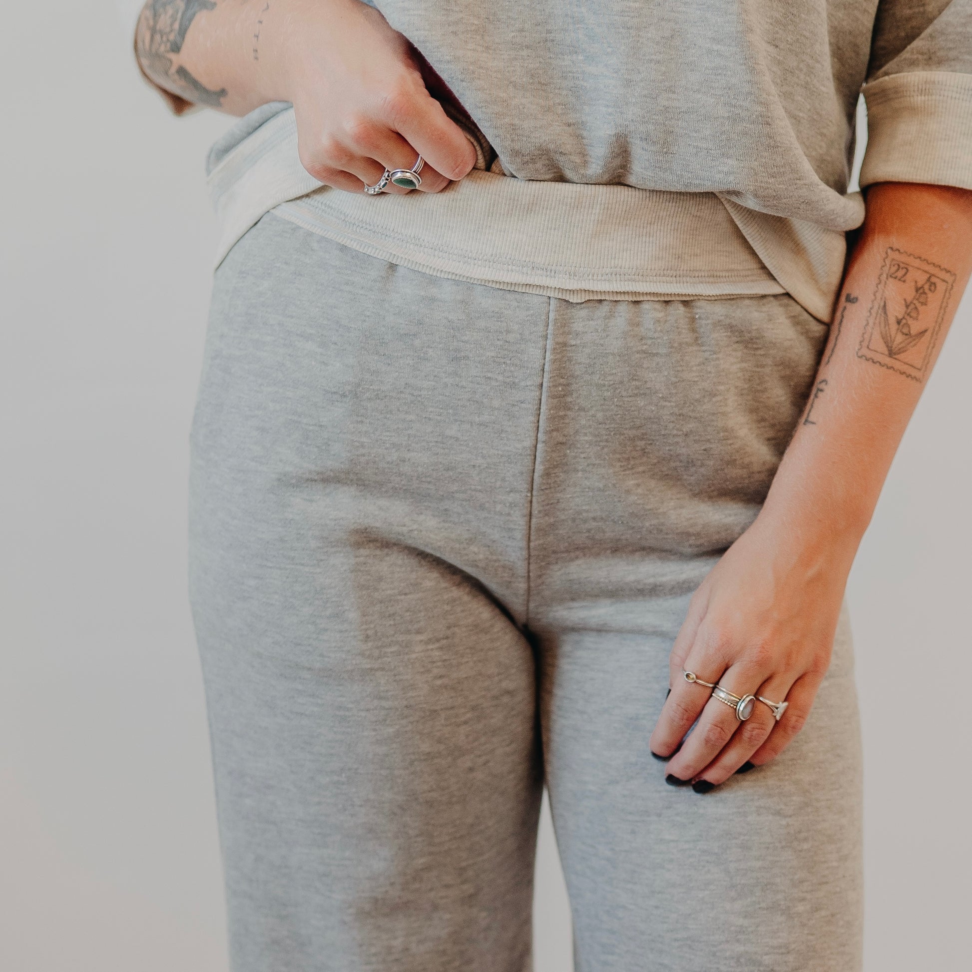A pair of lounge pants you’ll actually want to wear out of the house. These wide leg pants feature a flattering high waist, seam detailing at the front, and a comfy knit that moves with you. Pair with sneakers and the matching top for weekend errands, or slip them on for cozy nights at home.