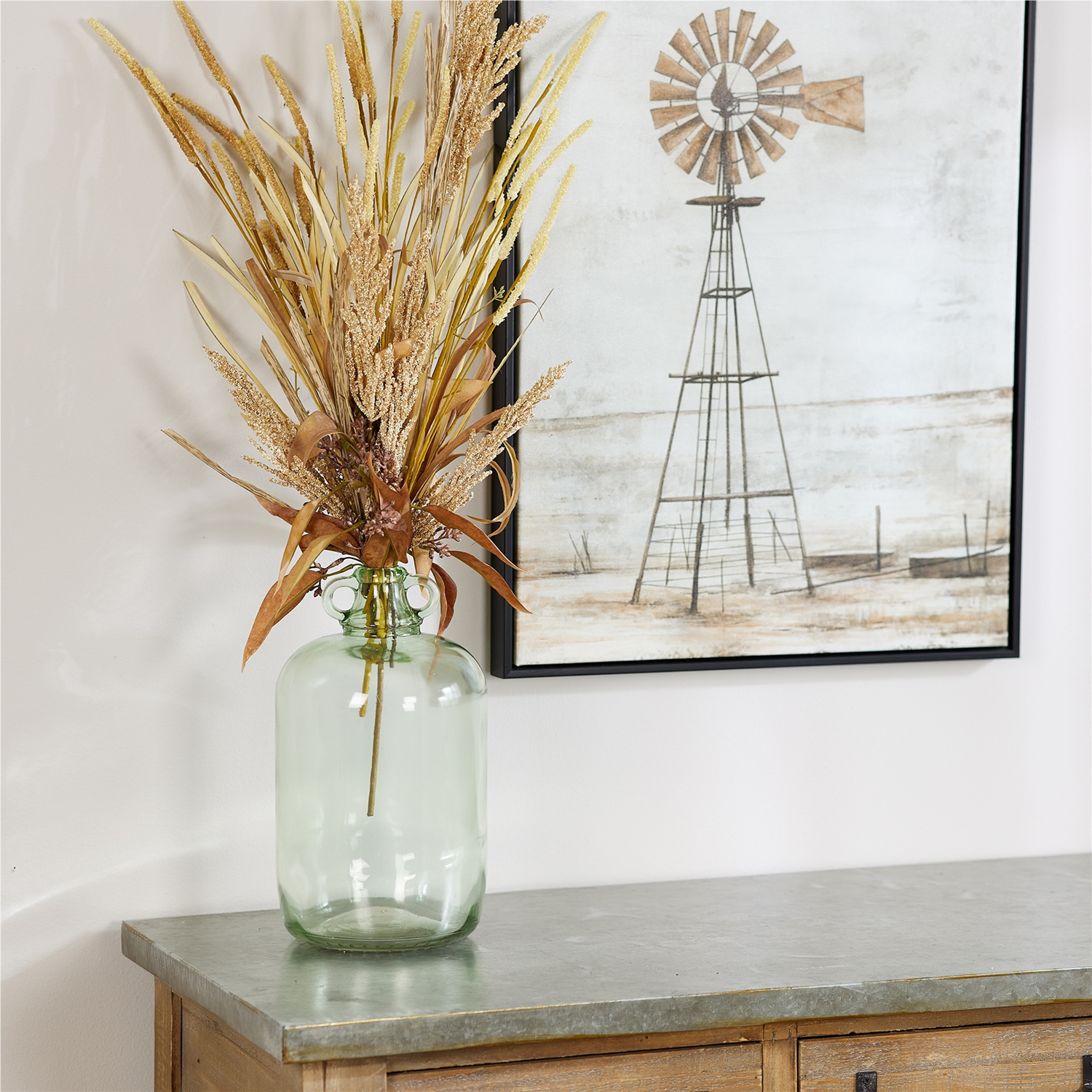 Bring soft, natural charm to your home with this set of sage green glass jug vases. Featuring a vintage-inspired shape with integrated handles and a soothing green hue, these decorative pieces are perfect for showcasing fresh flowers or elegant faux stems. Whether styled alone or filled with blooms, their translucent glass and graceful curves create a warm and inviting focal point in any room. Ideal for tabletops, shelves, or entryway displays, these jugs offer a stylish way to elevate your decor year-round. Sold in a set of two matching pieces to create a balanced and memorable display in your home.