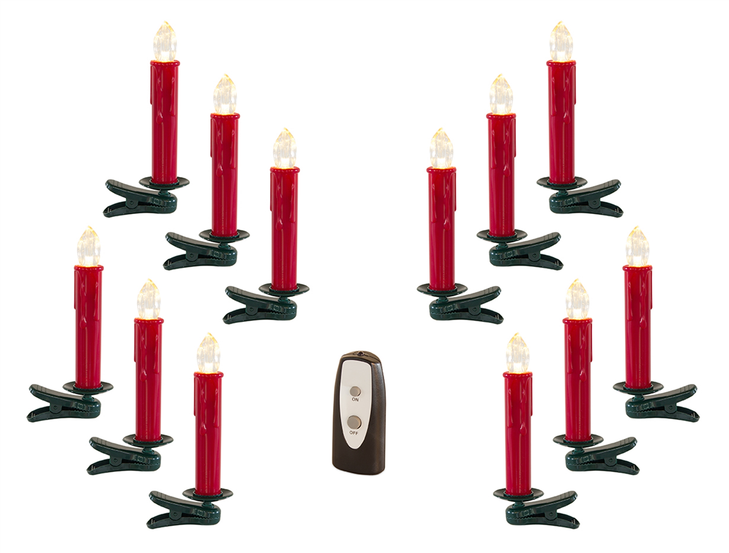 Bring the cozy, flickering glow of traditional candles to your holiday decor with our LED Clip-On Taper Candles (Set of 24). Featuring realistic red and green colors, these 6.5" taper candles are a safe, flameless alternative to real candles. The innovative clip-on design makes them easy to add to your Christmas tree, garlands, wreaths, or any other festive display. With the included remote control, you can effortlessly turn the candles on and off, and even set a timer for 4 or 8 hours, adding convenience to your holiday season. No smoke, no mess, just beautiful, radiant light to brighten up your home.