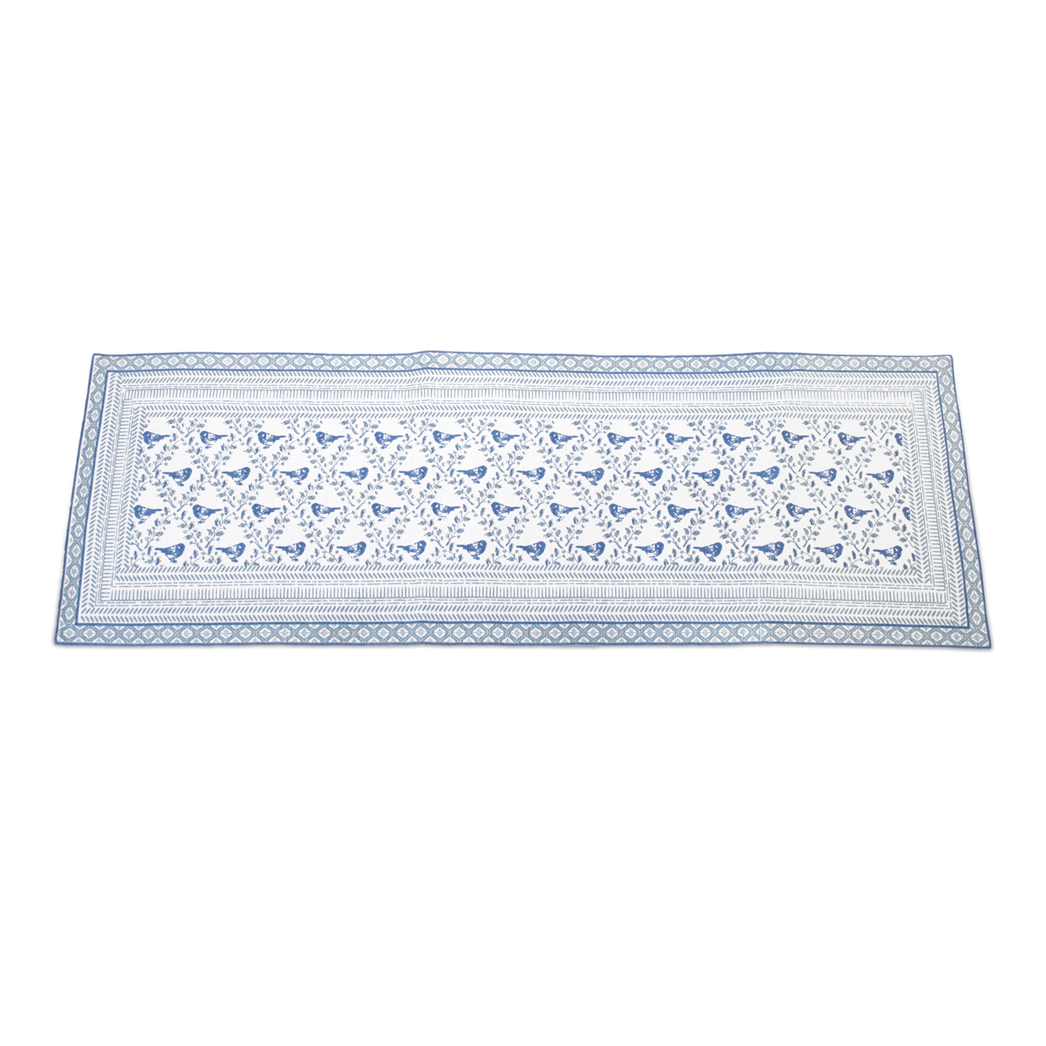 Elevate your dining space with this charming Dutch Country Table Runner, perfect for adding a touch of rustic elegance to your home. Crafted from soft polyester fabric with a smooth backing, it features cool blue and white tones, showcasing an intricate pattern with delicate bird accents. Ideal for modern farmhouse or garden chic styles, this runner adds depth to your tabletop decor, whether displayed on your dining table this spring or used under your favorite displays for a fresh, inviting look.
