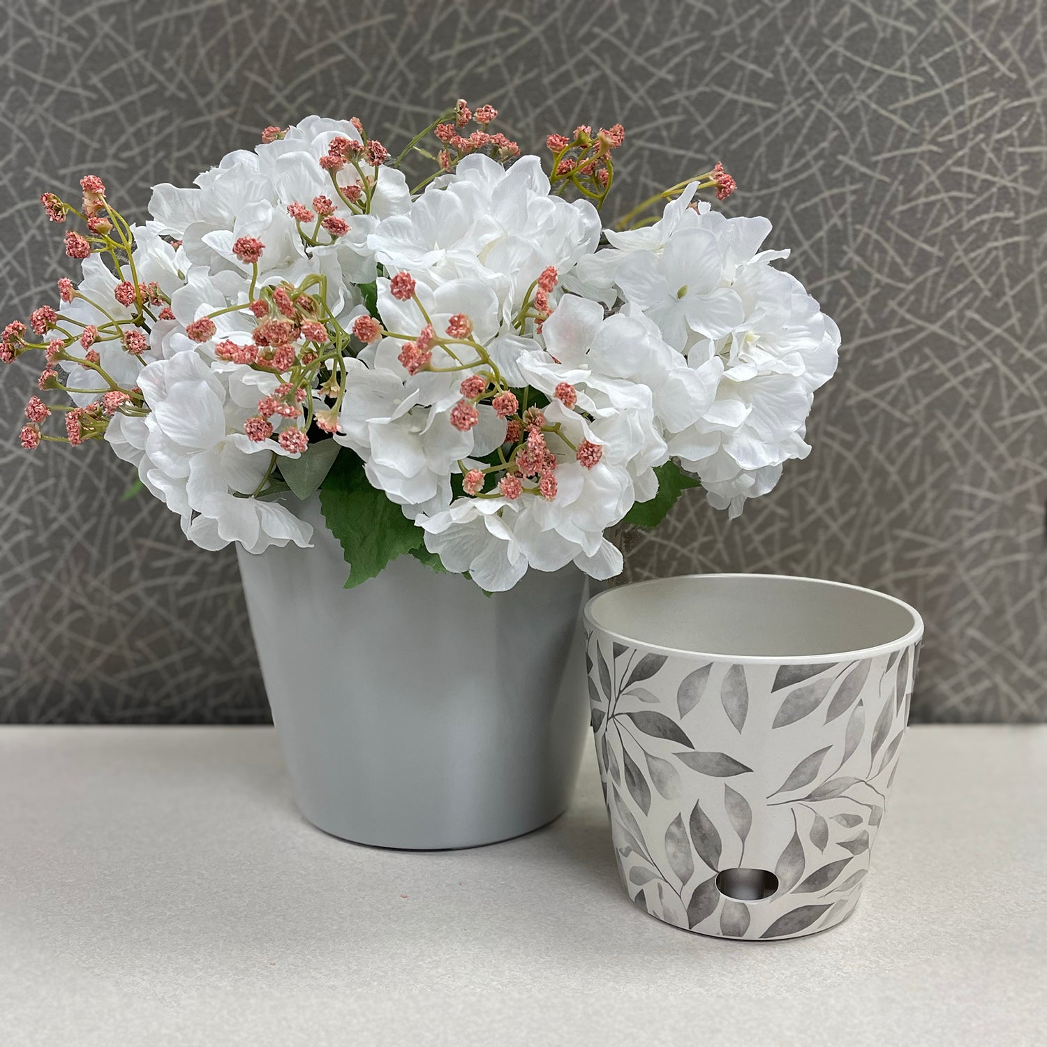 Self-Watering Plant Pot Set of 2 5" Gray Leaves & 7" Gray Solid