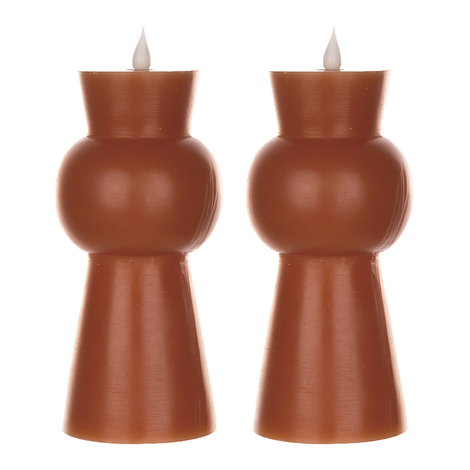 Add a touch of elegance to your home with the Simplux LED Designer Candle Set. Designed for contemporary and mid-century modern spaces, this set features a stunning abstract tapered shape and a warm orange finish, creating a realistic candlelight effect with its moving flame. Perfect for adding ambiance to any room, these candles come with a convenient 4 and 8-hour timer for automatic on/off functionality. Crafted with a blend of wax and plastic, they provide a realistic look without the worry of real flames. Ideal for lanterns, holders, or standalone decor, they are powered by 2 AA batteries (not included), offering a safe and hassle-free lighting solution. Sold in a set of two candles to create a balanced display in your candle holders and arrangements.