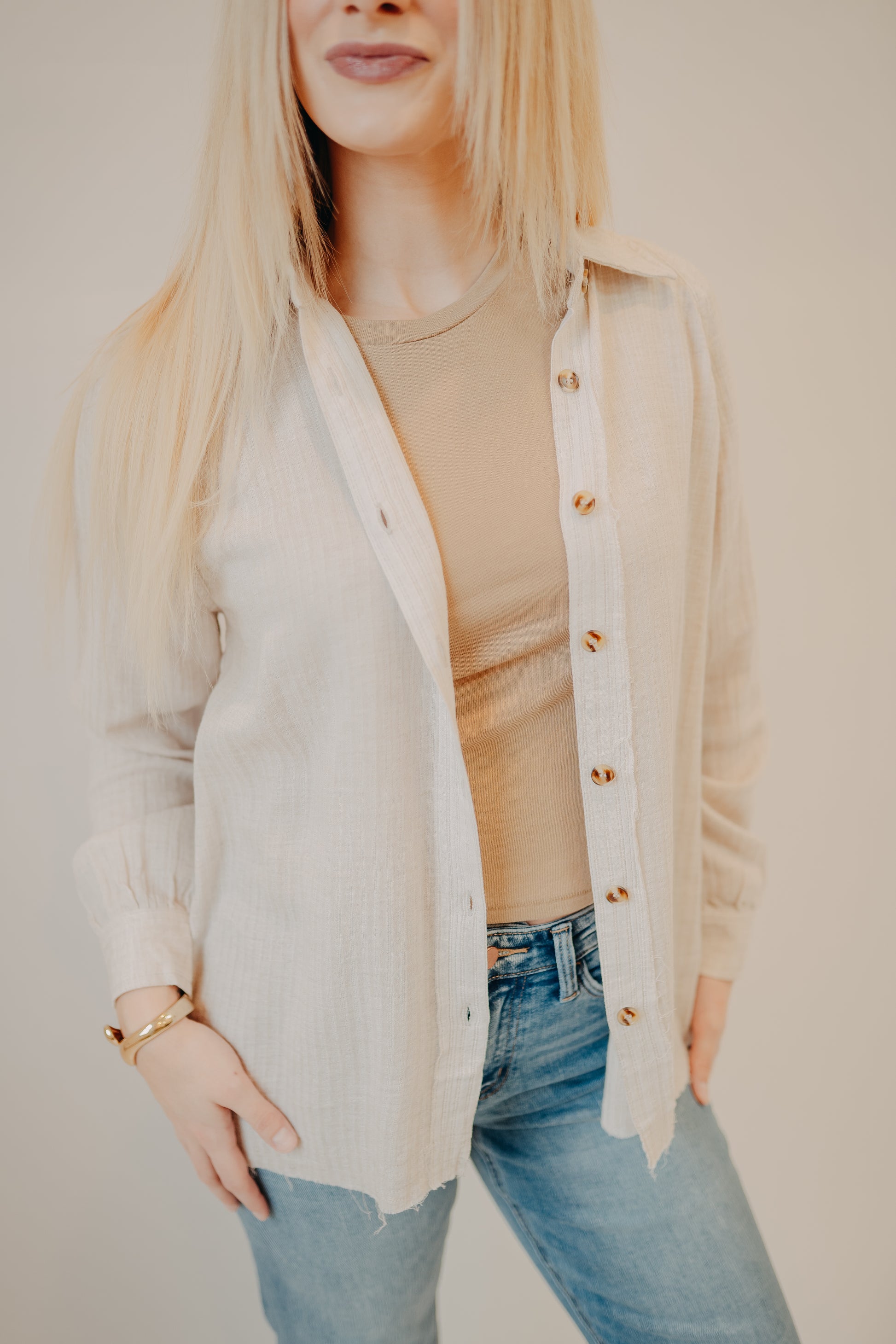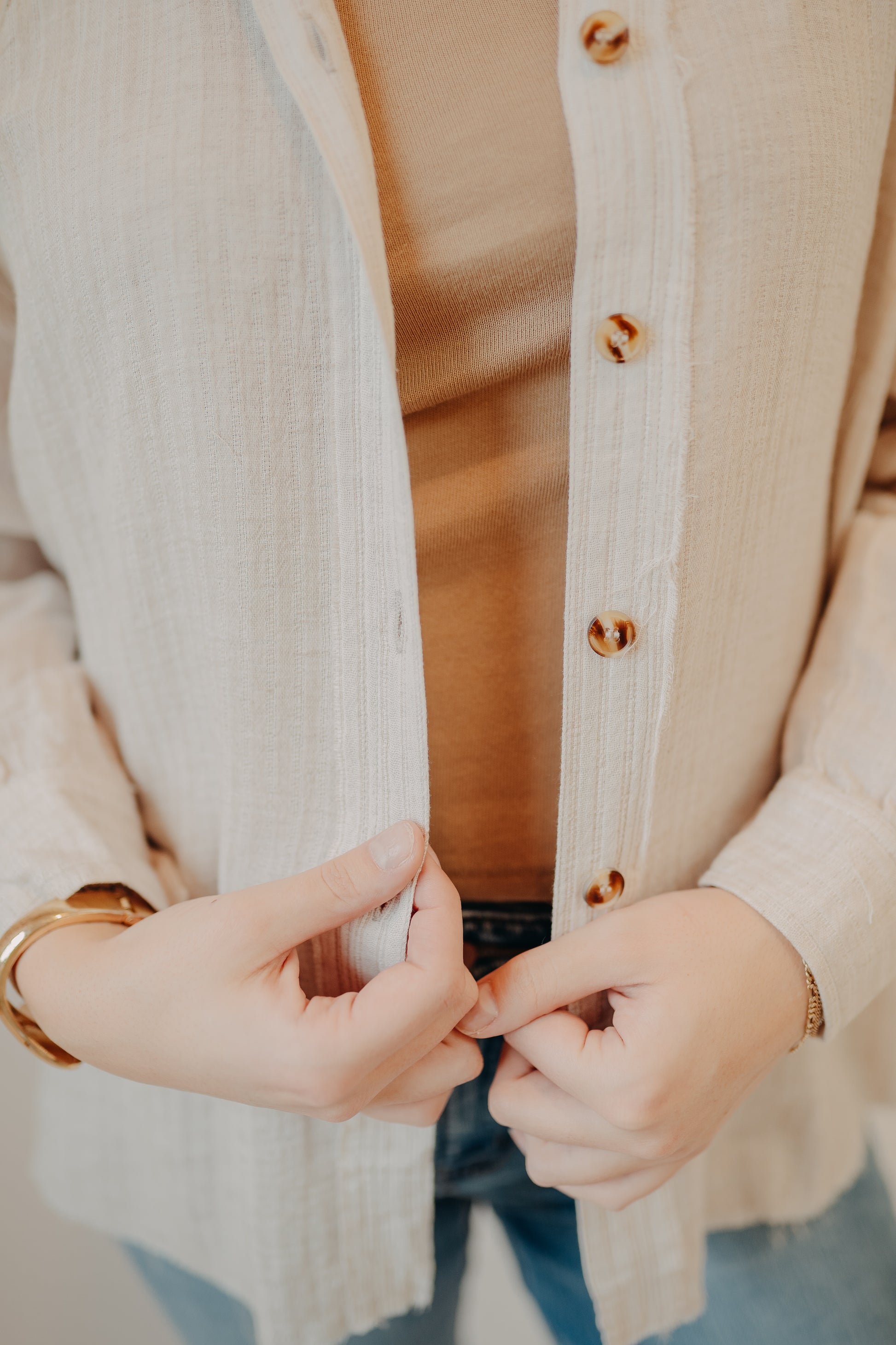 A lightweight button-down that works as an easy layer or a standalone top with a relaxed, lived-in feel.