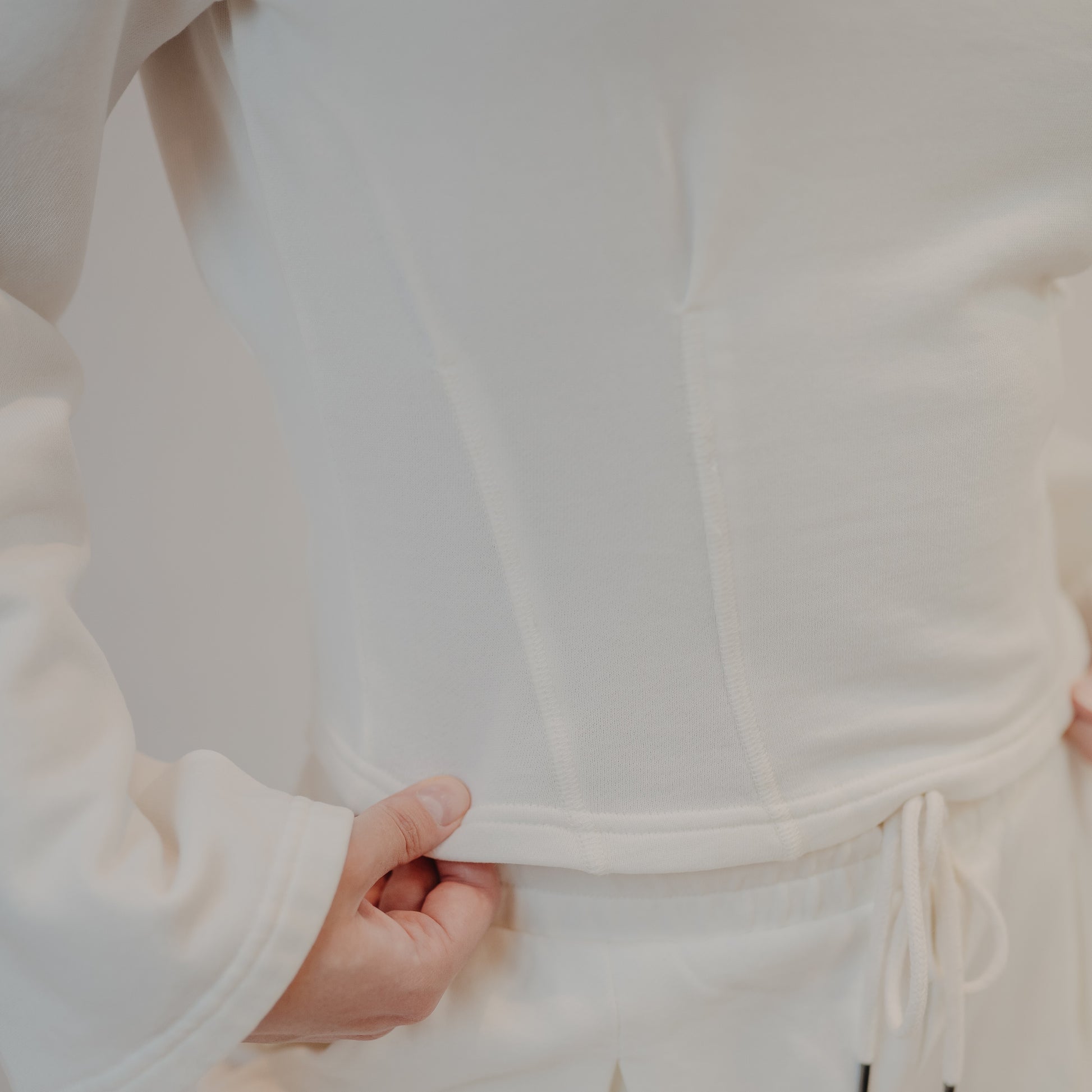 Sleek yet cozy — this structured long-sleeve top gives elevated loungewear a polished twist.