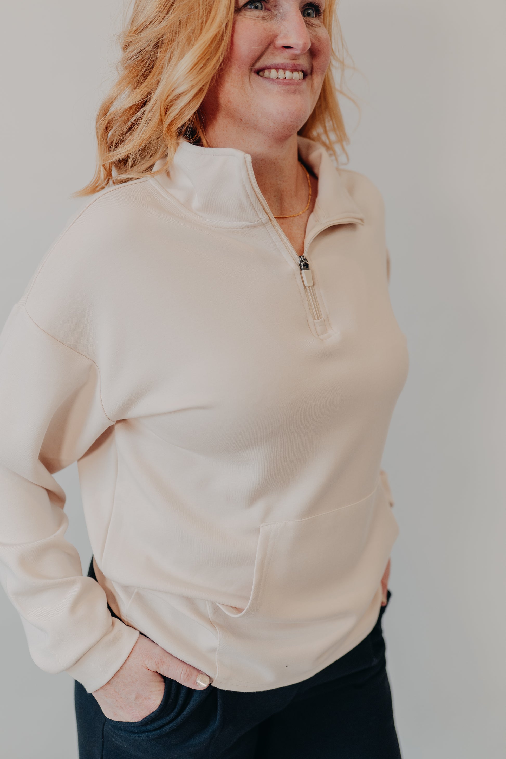 - Quarter-zip neckline for adjustable comfort