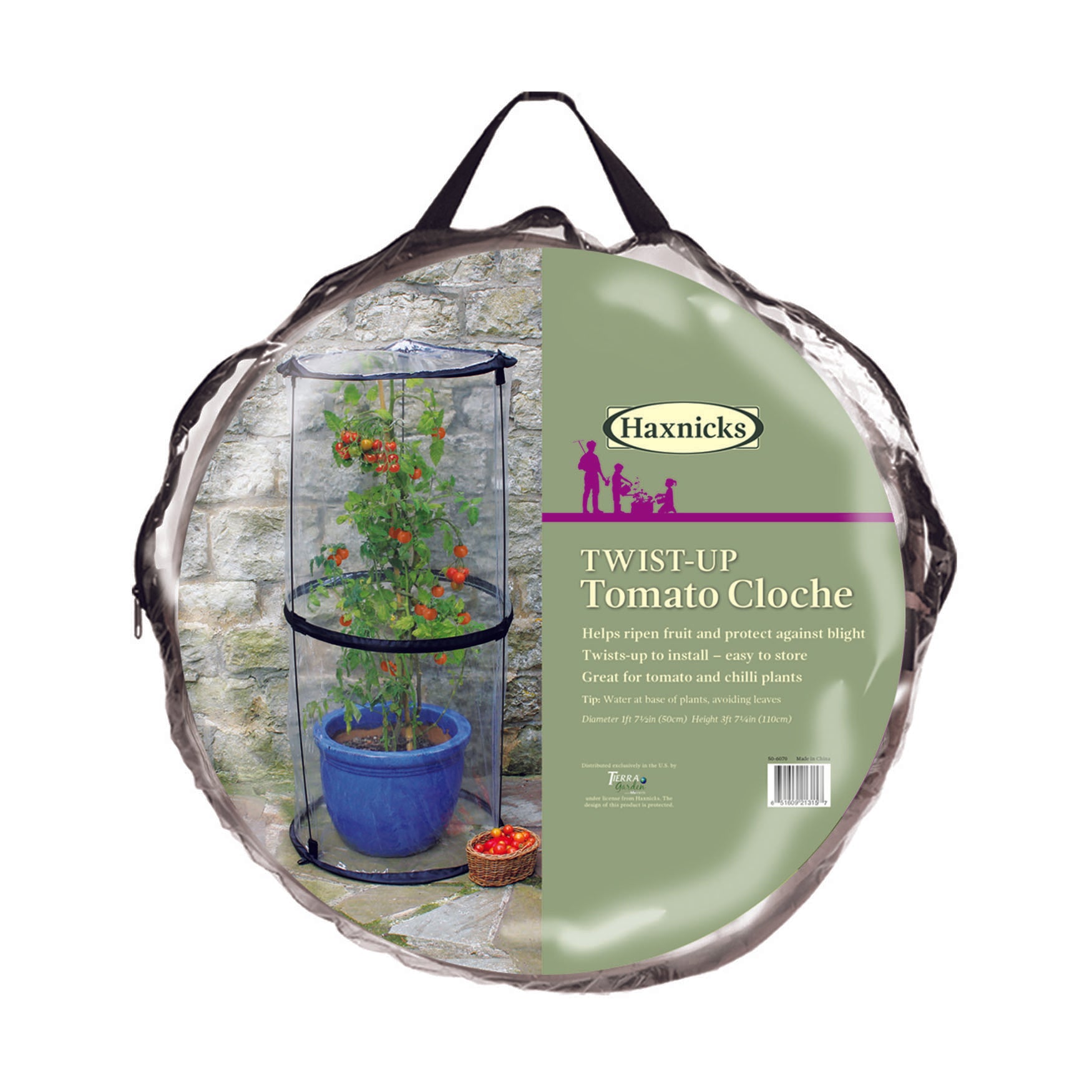 An attractive lightweight growing cover with a generous height for larger plants and air vents. Ideal for growing tomatoes and other tall plants. It will provide a cozy moist growing environment and help to protect against blight slugs and harsh weather. Pops up quickly and folds down neatly to store. Enables earlier planting. Comes with ground pegs to hold cloche in place over plant. For nearly 20 years the Haxnicks company has been designing and manufacturing innnovative garden care and plant protection products for their customers in England. Tierra Garden is proud to offer this distinctive line in the United States! Product: 19"D x 43"H 1.75lbs. Pack: 20.5"W x 0.5"D x 20.5"H. Pack Size: 1