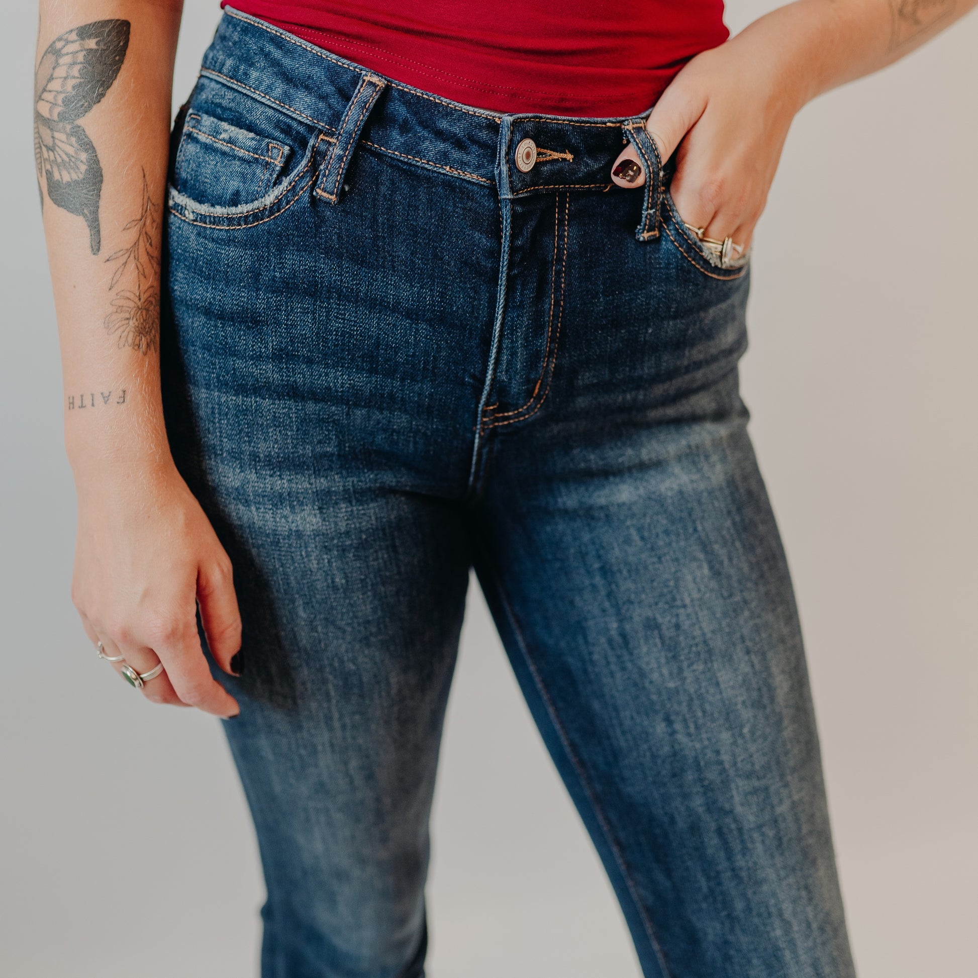 Your new everyday denim—these dark wash jeans are designed with a slim straight-leg fit and just the right amount of stretch for all-day comfort. The clean silhouette and flattering fade make them easy to dress up with a blouse or keep casual with your favorite tee.