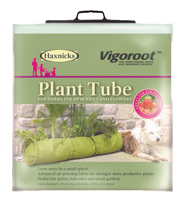 Vigroot Plant Tube is made from an advanced air-pruning fabric that creates a super strong root system for healthier more productive plants. This Plant Tube is suitable for a wide variety of herbs vegetables and flowers as well as strawberries and fruit bushes. This works well on patios in gadens within decorative planters or containers and for hydroponic gardening. The Vigroot Tube Planter has a long cylindrical shape for narrow spaces and has reinforced hoops to keep the circular shape. Product: 6"D x 29.5"L 3.4 gallon. Pack: 7"W x 9"H x 1.6"D. Pack Size: 1