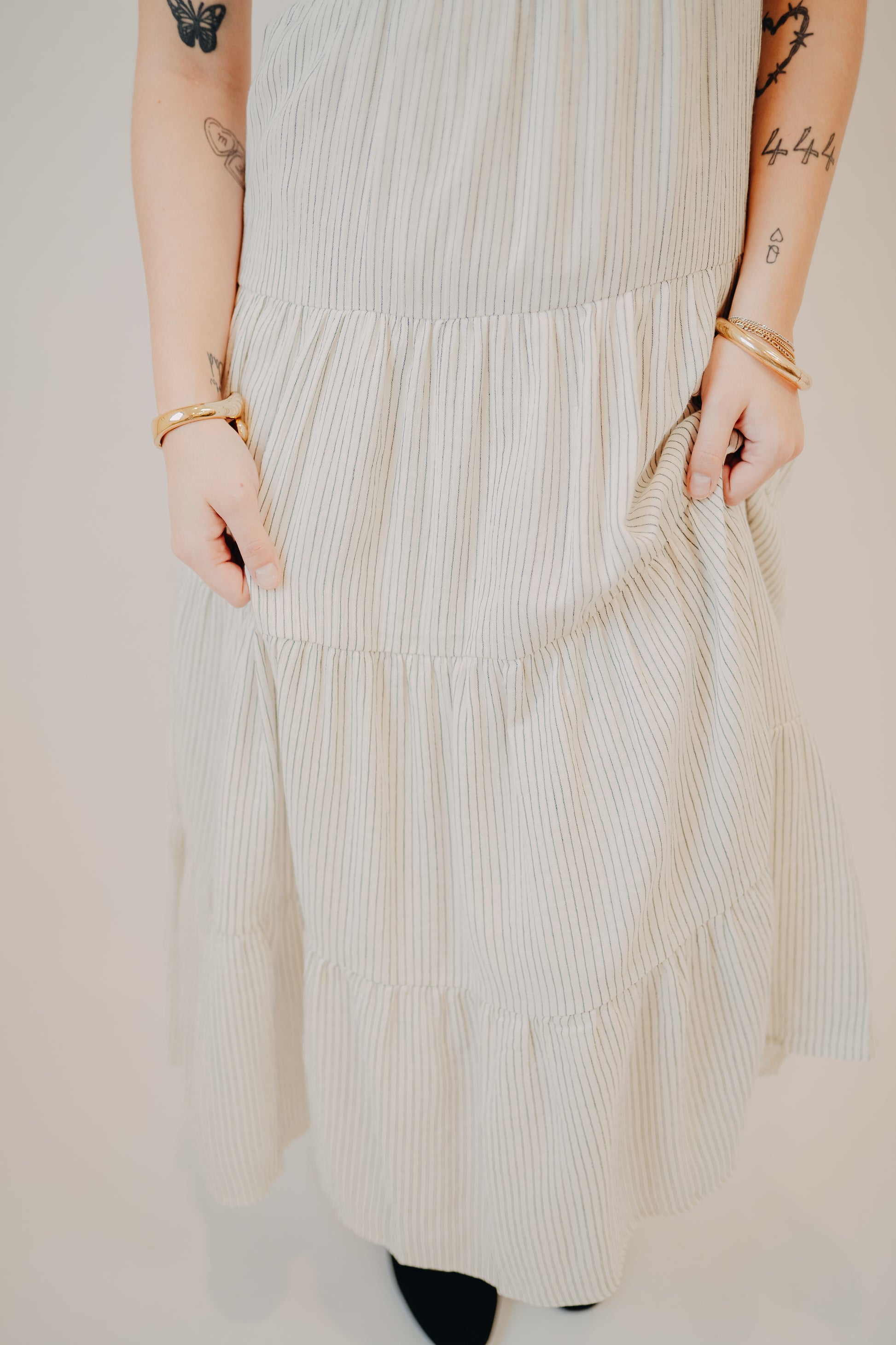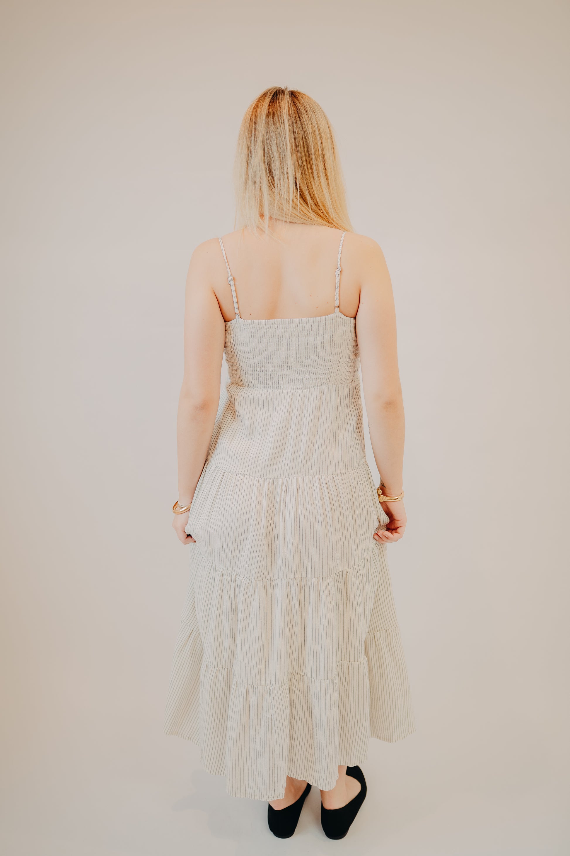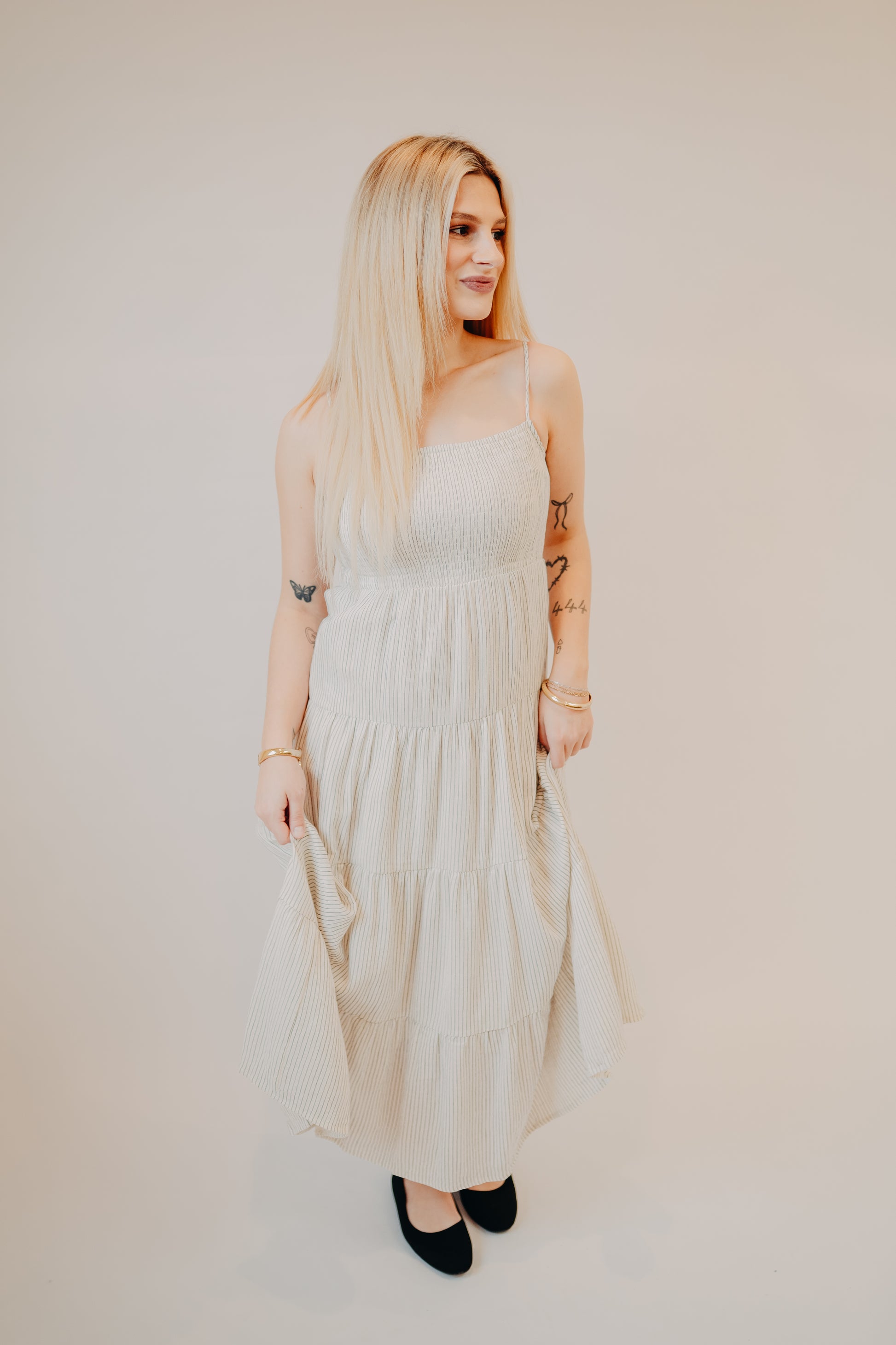 A soft, breezy tiered midi dress with an easy, romantic feel—perfect for warm days and laid-back plans.