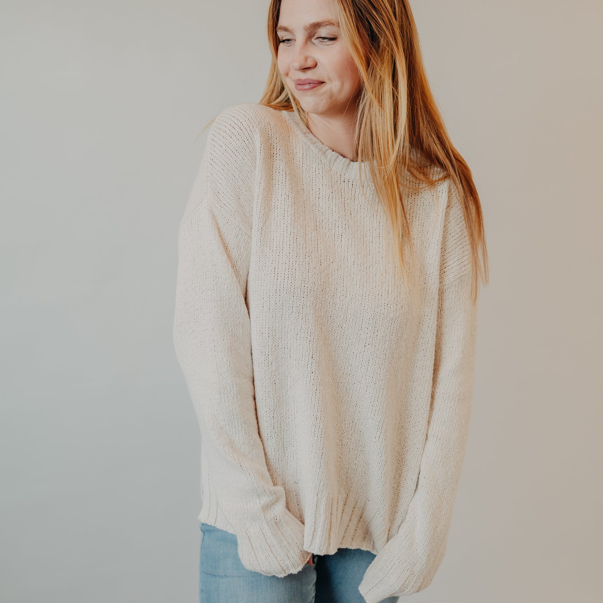 Soft, slouchy, and effortlessly timeless — this crystal knit sweater is the definition of cozy chic. Designed with an easy relaxed fit, ribbed trim, and subtle side slits, it’s perfect for layering or wearing solo. Style it half-tucked into denim for a casual weekend look or pair it with a midi skirt and boots for elevated comfort that still feels laid-back.
