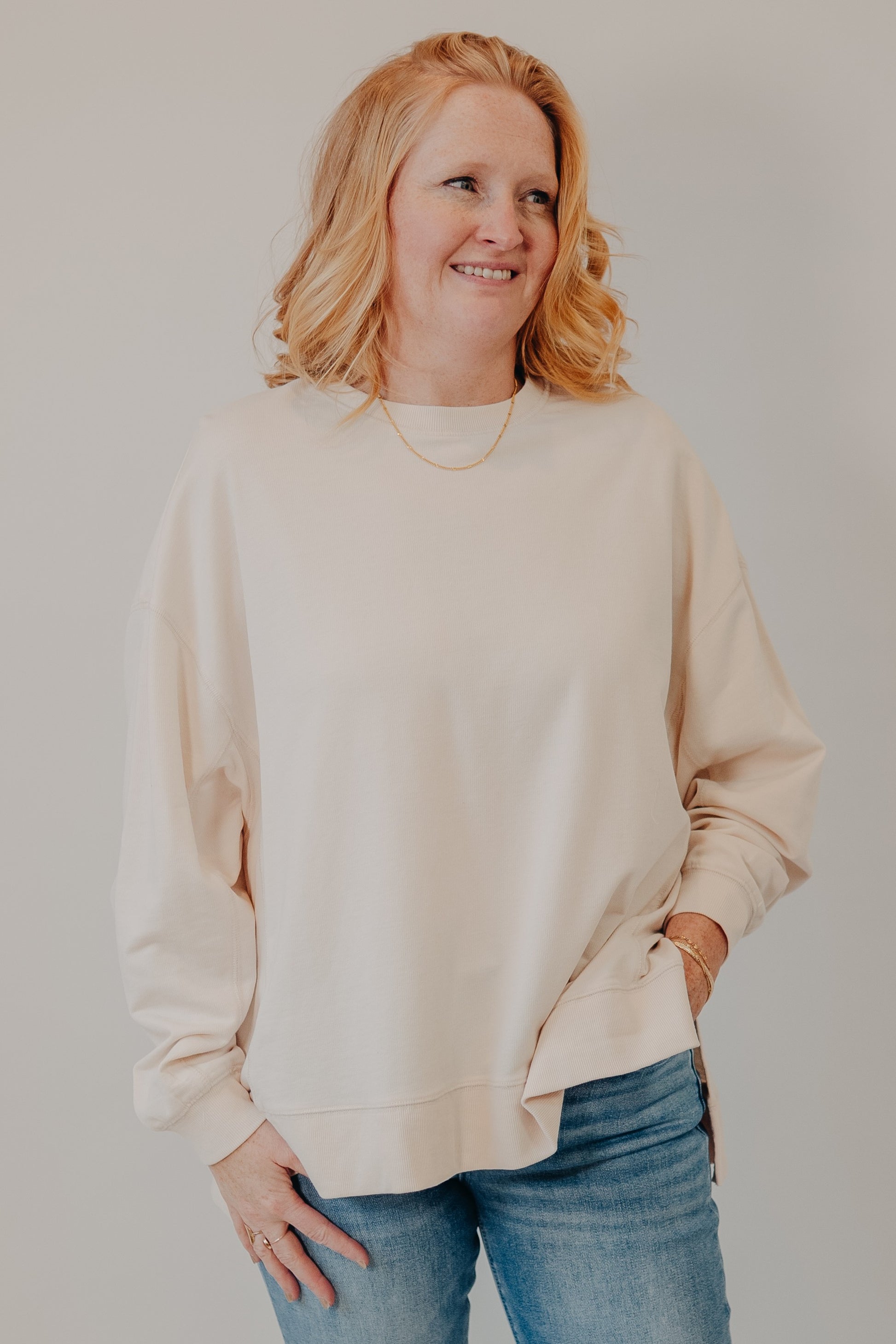 An elevated everyday sweatshirt with a clean, minimal look and an effortlessly relaxed feel.
