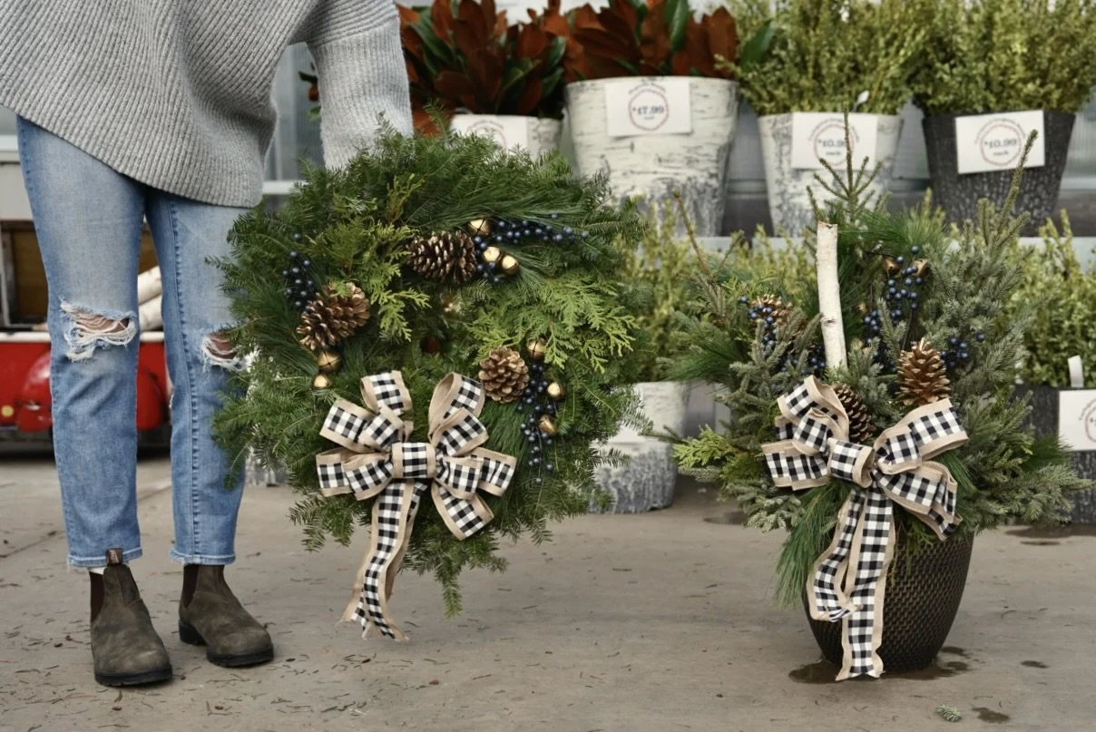 Be sure to shop our seasonal selection of porch pots, garland, centerpieces, wreaths + more! We also offer workshops to make your own fresh wreaths + porch pots in November + December! This is a great way to create your own custom combo for your home!